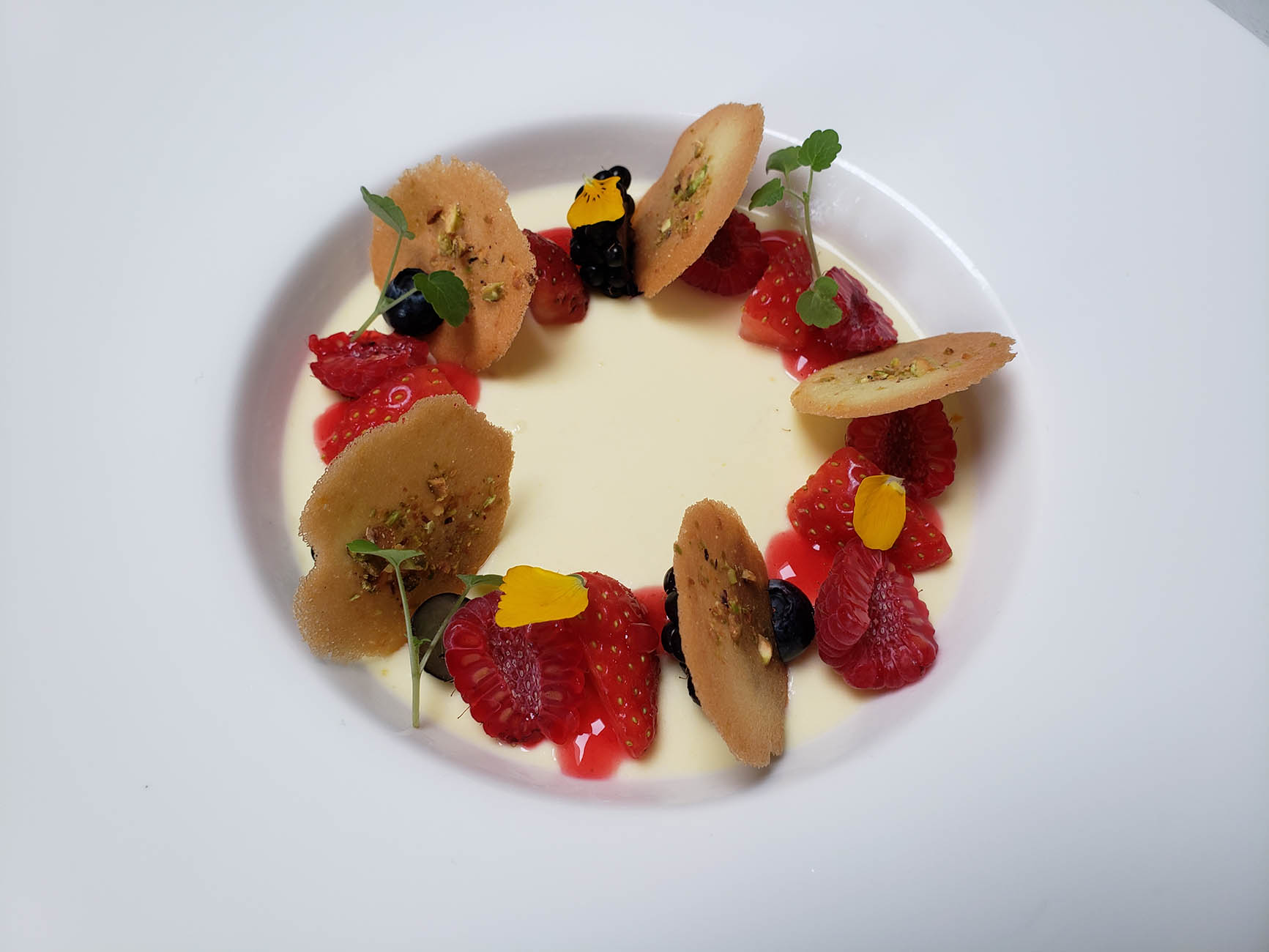 Orange Pana Cotta | Grand Marnier | Fresh Berries | Pistachio Tuile